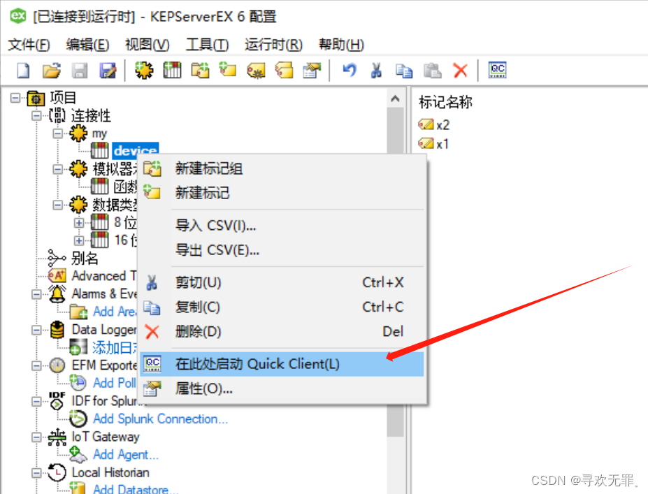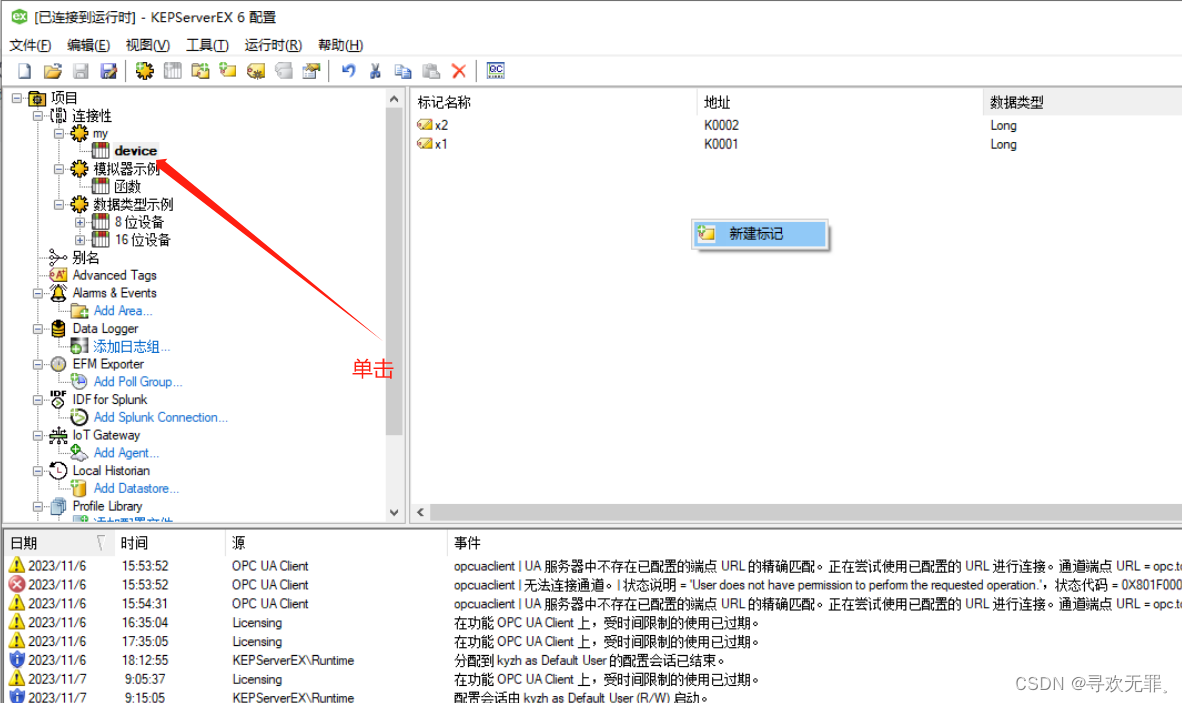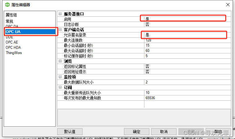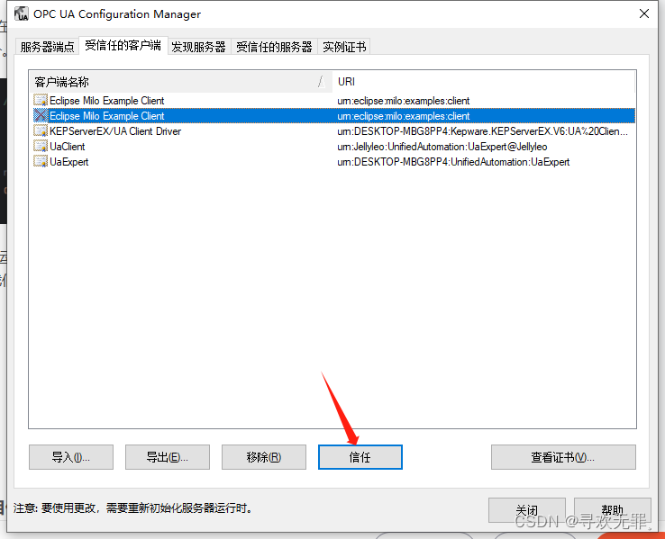 右击运行图标----OPCUA配置,受信任的客户端,点击列表中被红色叉标记的项,点击信任。