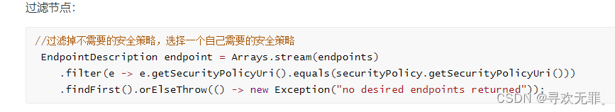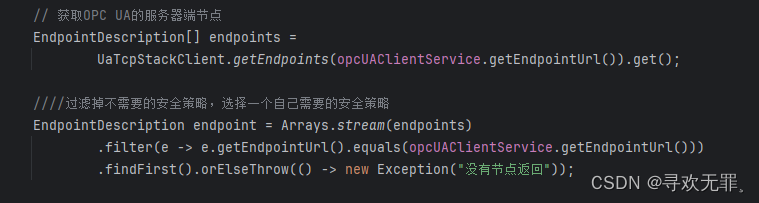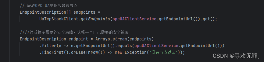 获取端口的时候,会利用给的url和端口号进去查找,查找的是milo项目内原本的安全策略项,一般有四个,是全部获取。我们提供的一个URL会和4个安全策略,生成4哥endpoint。