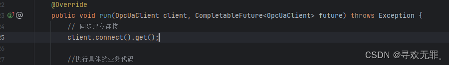 回到run()方法,利用该链接和刚刚传进来的opcUAClientService,调用后者的run()方法,进去后,调用业务层的代码。