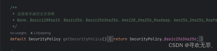 在OpcUAClientService接口修改项目里的安全策略,选择KEPServerex6里面我们勾选的其中一个。