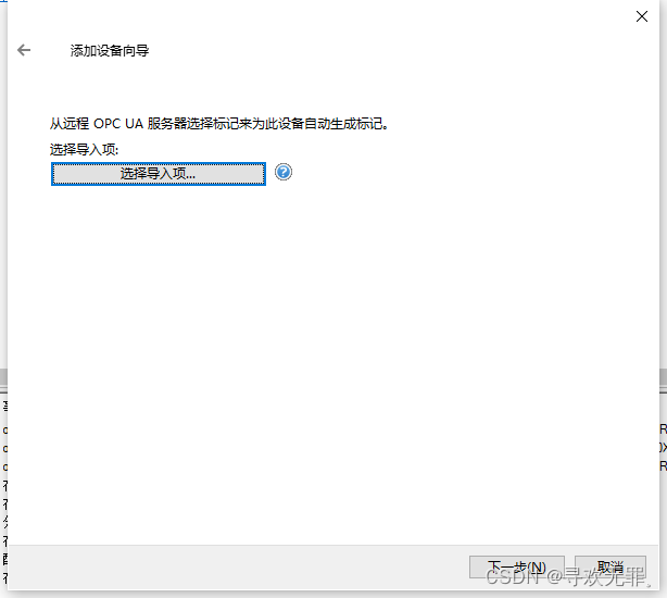 之后对该通道新建设备,输入英文设备名,之后一直下一步,直到可以导入项。