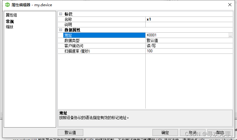 也就是说我们的值存在节点里面,通过地址空间可以找到节点。所以在对节点进行操作的时候,我们需要标识一个节点,就通过两个属性,第一个是namespaceIndex,也就是地址空间索引,我们使用KEPServerEX6的话,默认是2,因此基本都填2。