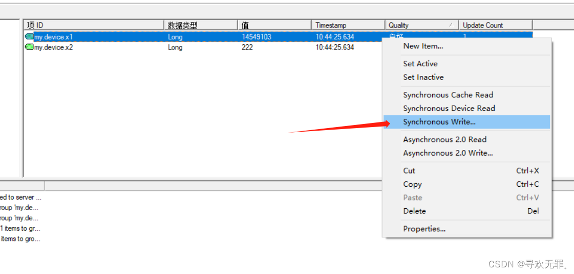 可以右击具体的标签项,选择Synchronous Write进行修改值内容。