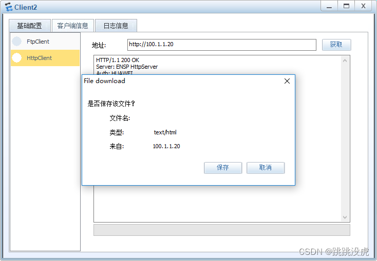 客户端信息->httpclient ->输入地址 100.1.1.20 ,回车,获得一个网页!