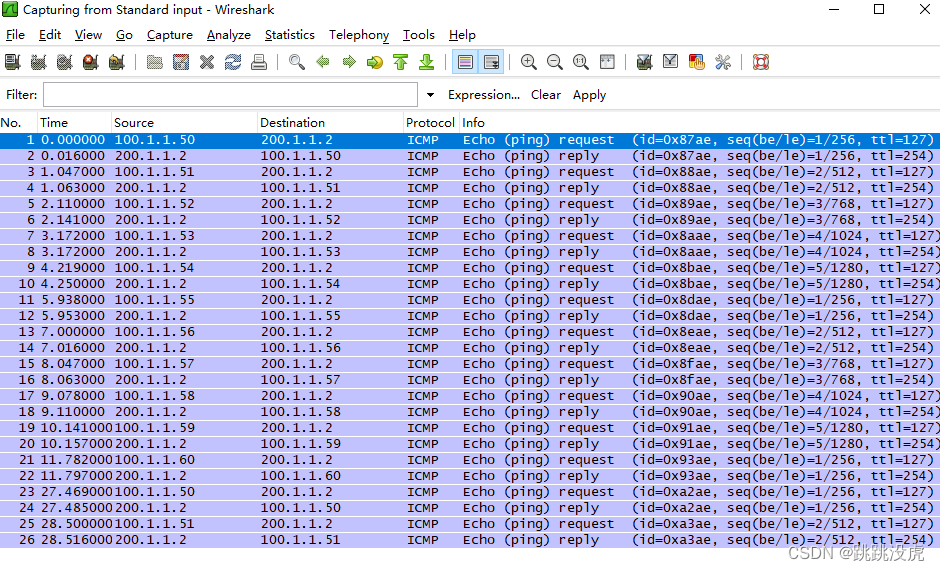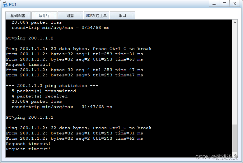 [AR1-GigabitEthernet0/0/1]undo nat outbound 2000 address-group 1 no-pat //撤销动态NAT配置 [AR1-GigabitEthernet0/0/1]nat outbound 2000 address-group 1 [AR1-GigabitEthernet0/0/1] 此时,内网访问外网时,不会受到IP地址数量少的限制,不会出现网络时有时无