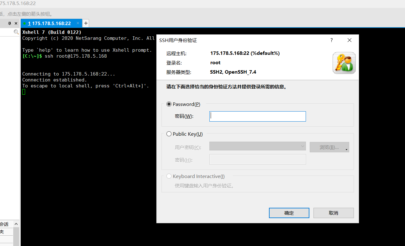 输入你要登入的用户以及公网IP: