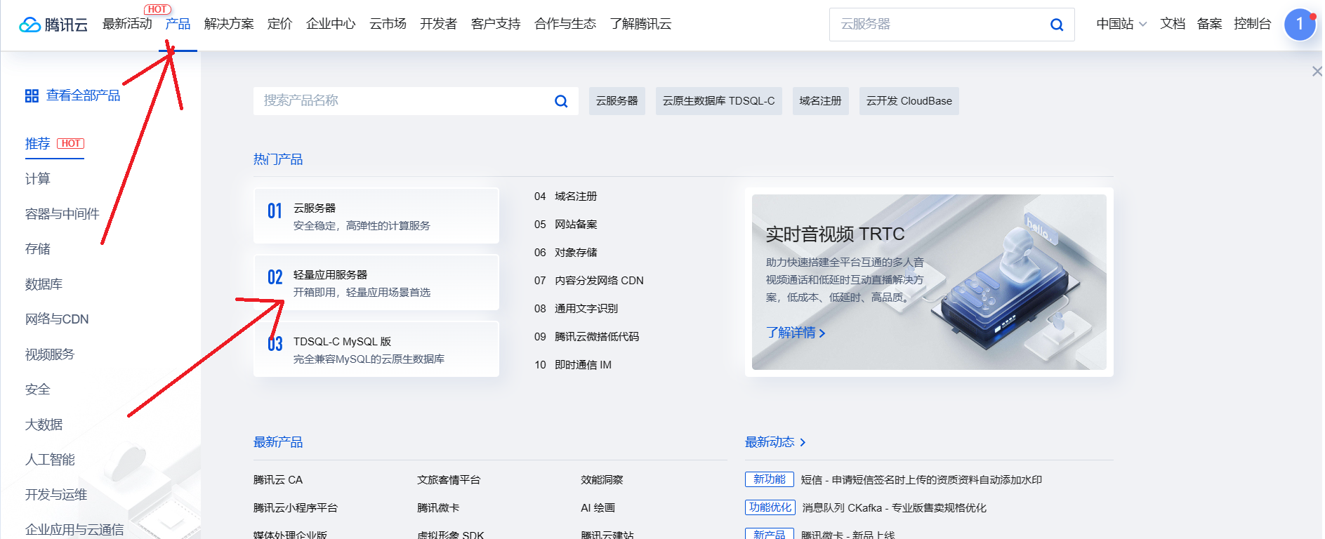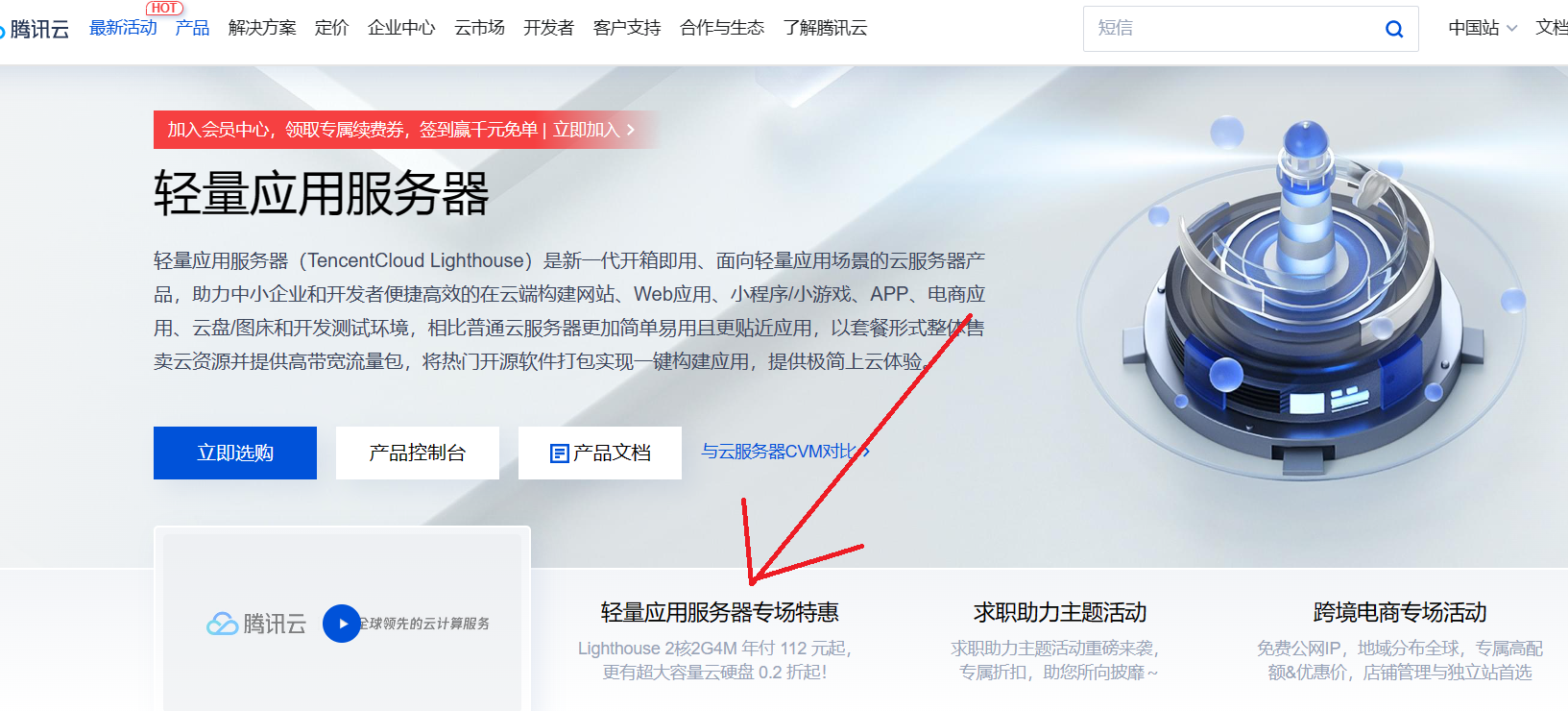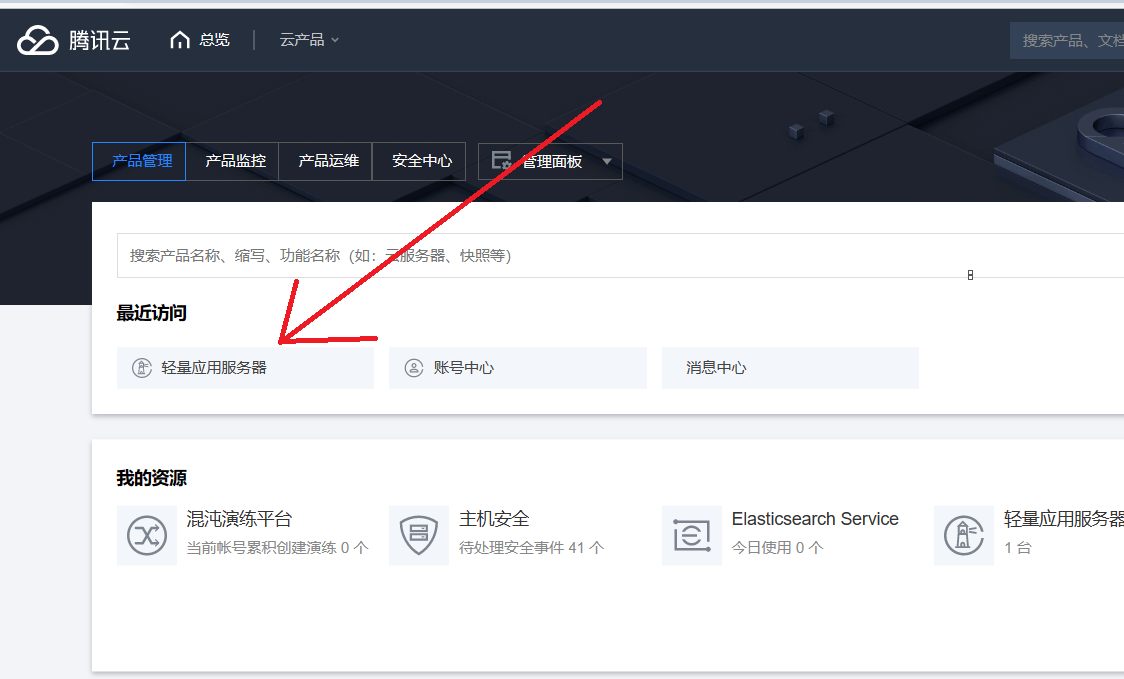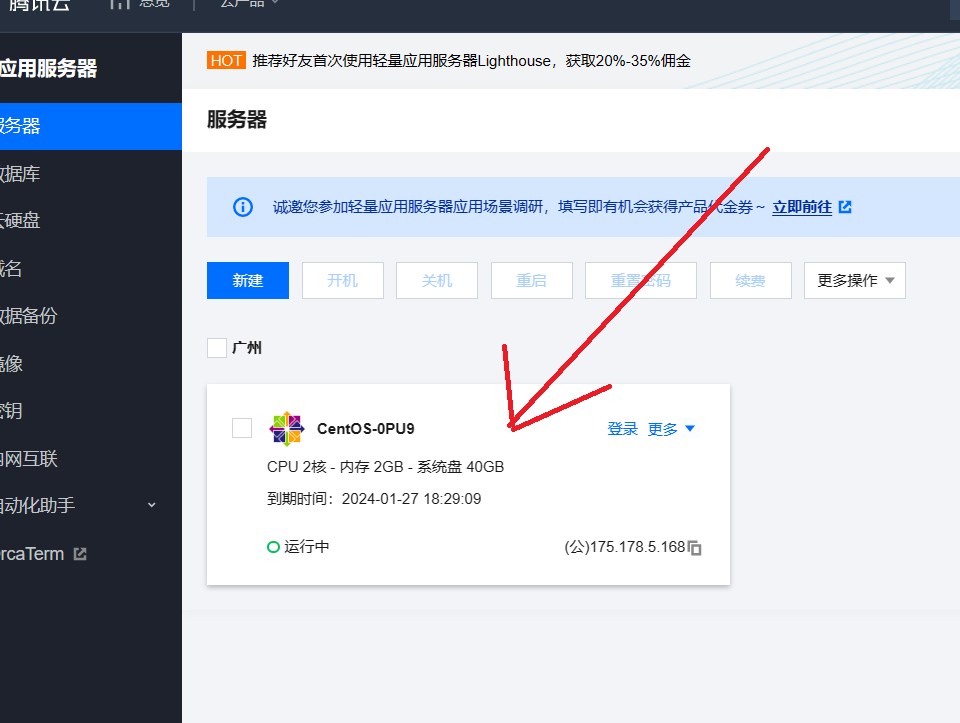 点击这个轻量应用服务器: