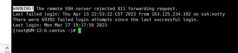 当这里弹出了WARNING的时候,就证明你成功登录了。