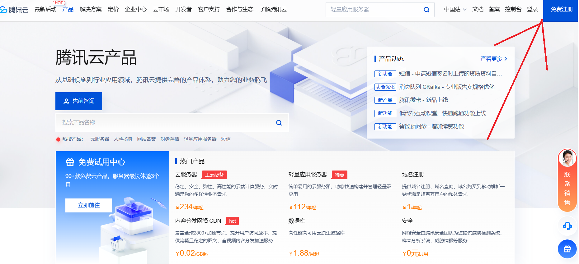 我使用的是腾讯云服务器,所以我在这里展示购买腾讯云服务器的流程,
