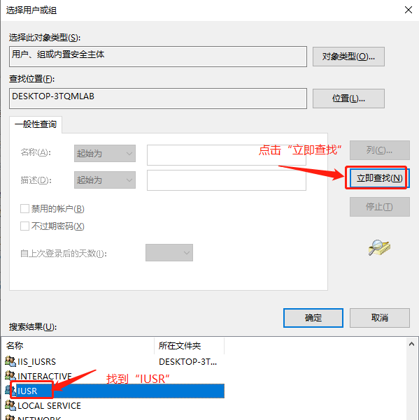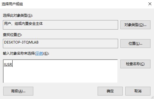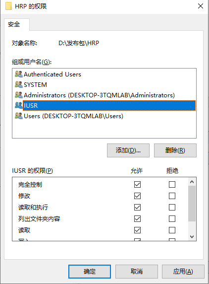 7)IUSR的权限添加读写权限(我选的是完全控制),并确定