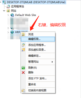 1)打开IIS界面,选中发布的网站,右键—>编辑权限