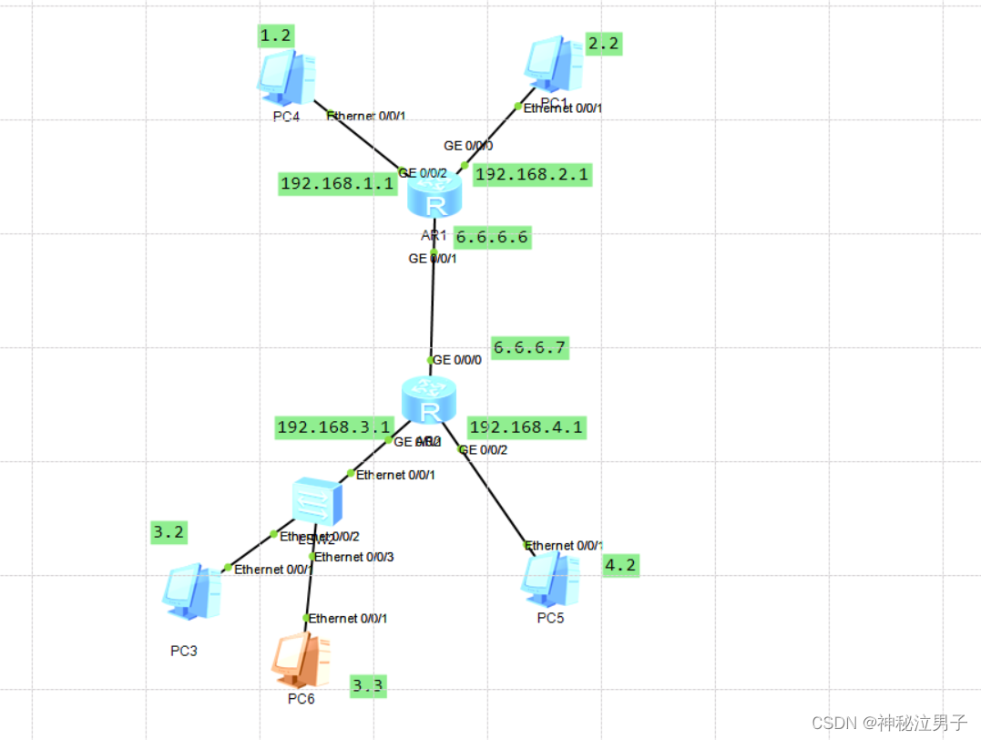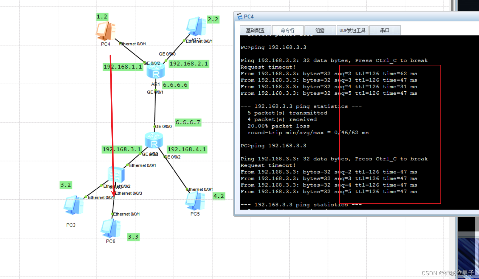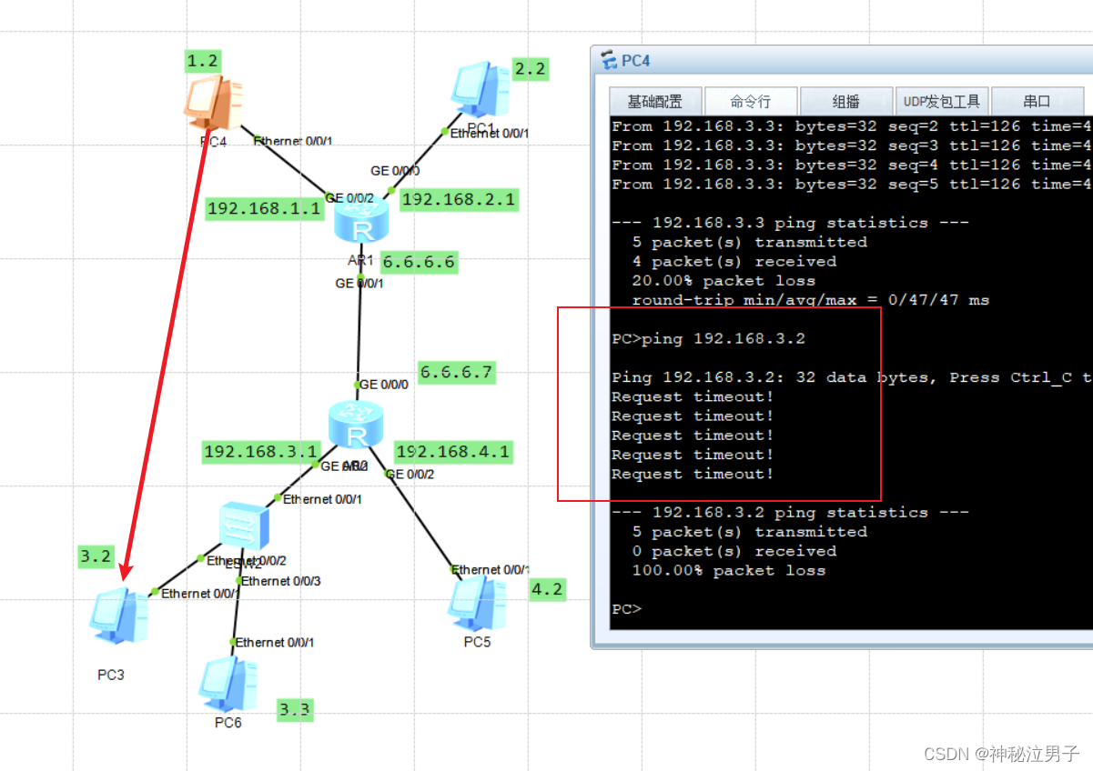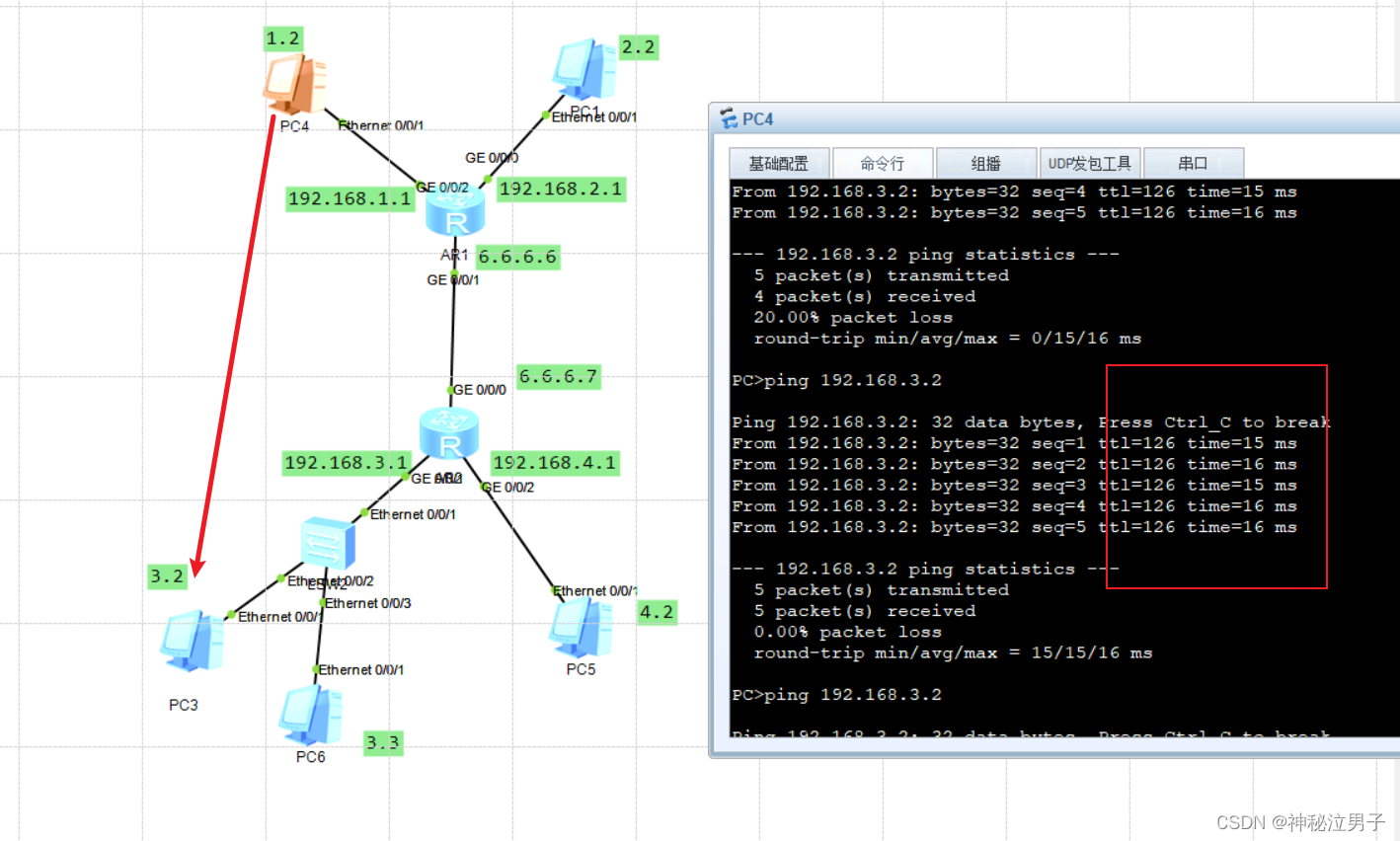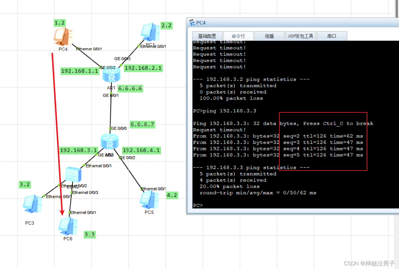 PC4(192.168.1.2) 访问 PC6(192.168.3.3)