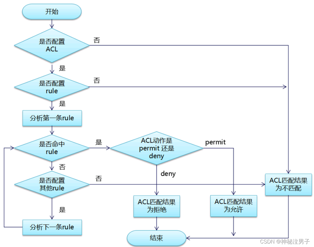- ACL匹配遵循“一旦命中即停止匹配”的原则。