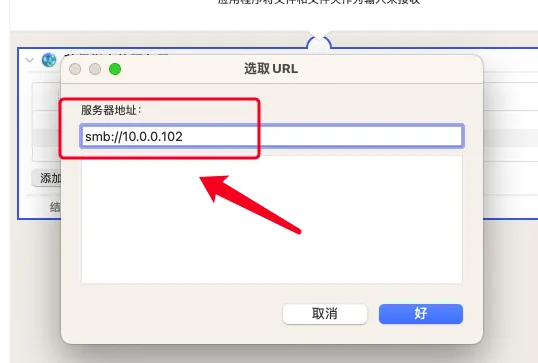 若要不想要弹出此界面,直接挂在,需要输入服务器的时候,加入子目录。