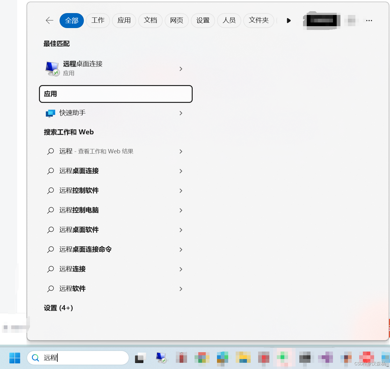1、需要先知道远程桌面连接需要哪些东西,在控制端win11桌面搜索框输入远程桌面连接,如下图所示;