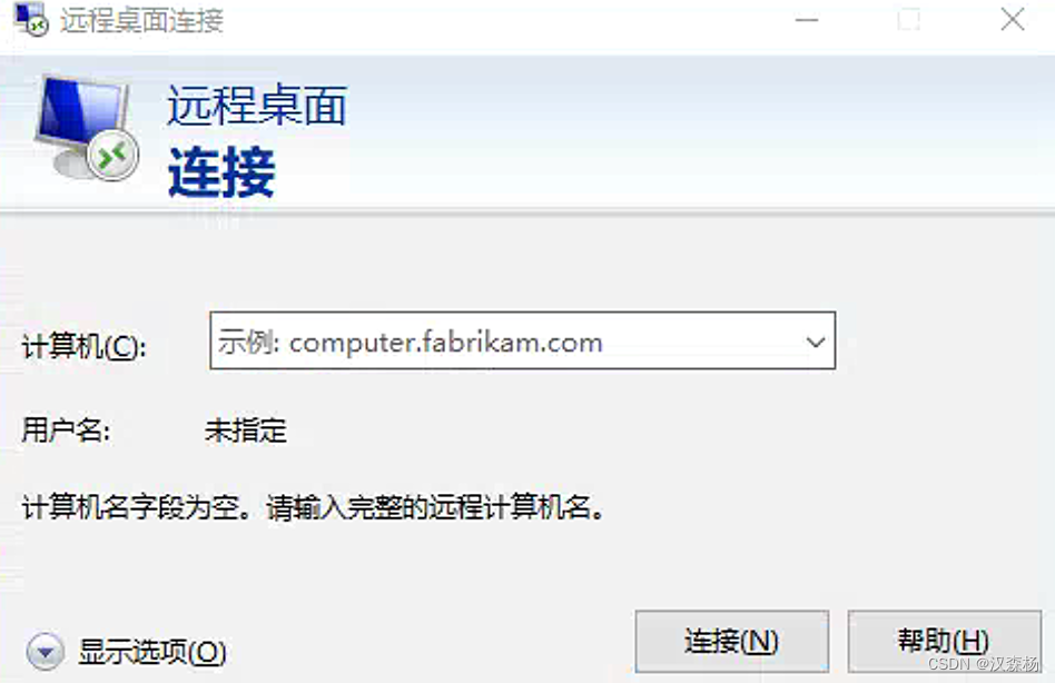 圈住部分为用户名,密码这里也很重要,不是PIN!!!这里需要检查被控端设置里面是不是使用Windows Hello登录,具体操作如下;