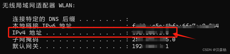 输入ipconfig会出现如下界面: