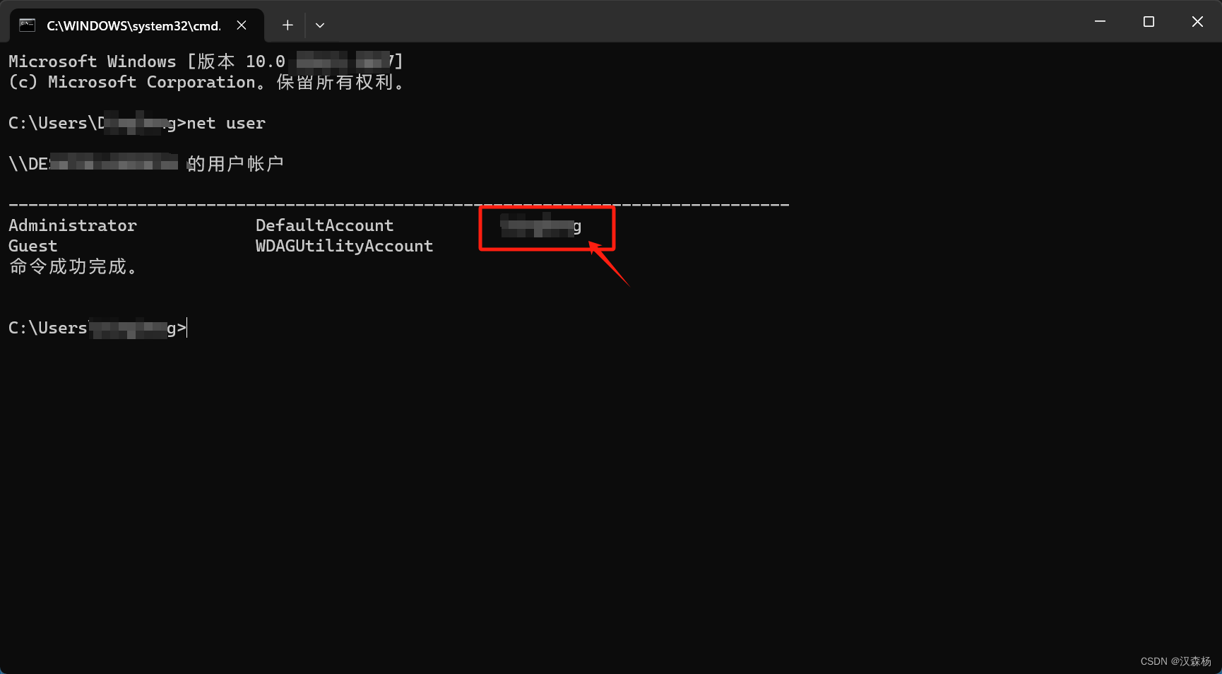 还是在被控端桌面win+R输入cmd,然后在终端输入net user,出现如下界面