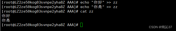 echo “信息” >> 文件名 >是覆盖 >>追加