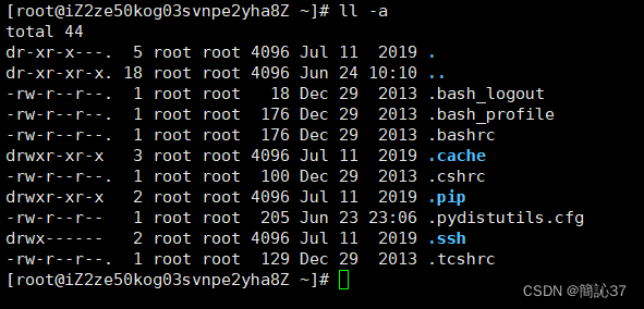 root表示用户名 @后是机器的名字 ~表示文件夹,刚上来是默认的用户目录