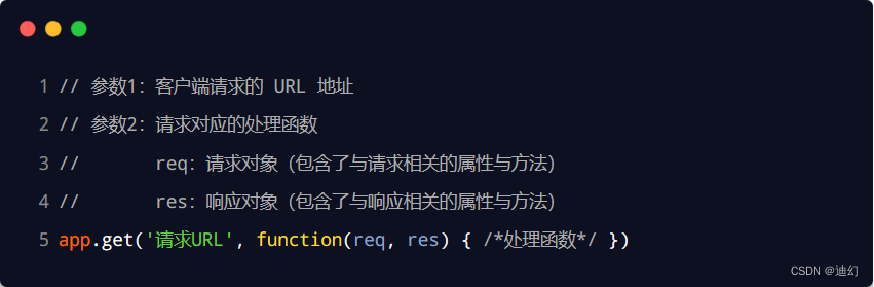 获取 URL 中的动态参数通过 req.params 对象,可以访问到 URL 中,通过 : 匹配到的动态参数: