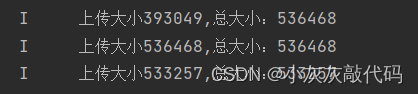 得到缓存目录中的图片文件后,通过网络请求将其上传至服务器。在上传过程中,我们可以通过日志或者UI来监听上传进度(日志示例)。