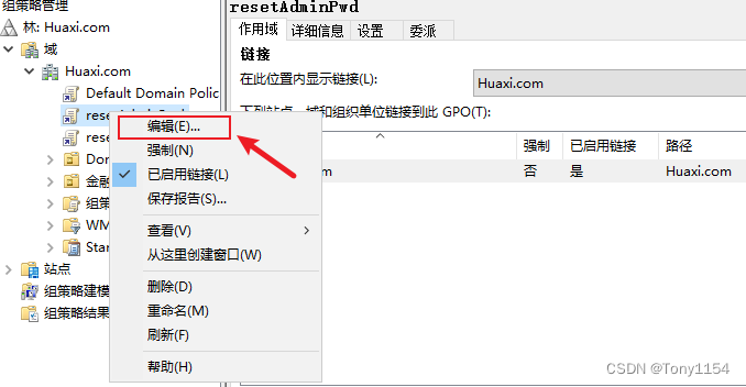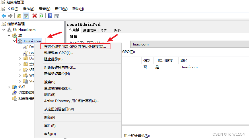 然后右键点击计算机所在域,点击“在这个域中创建GPU并在此处链接”