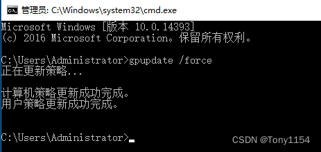之后需要在命令行下,执行gpupdate /force命令,强制更新域策略