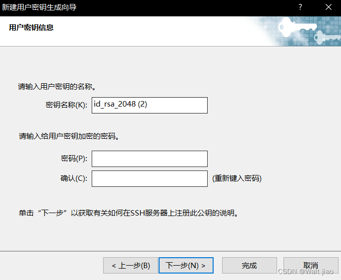 3.等待密钥生成后直接点击下一步,到此处可以看到,添加密码,可添加可不添加直接点击下一步