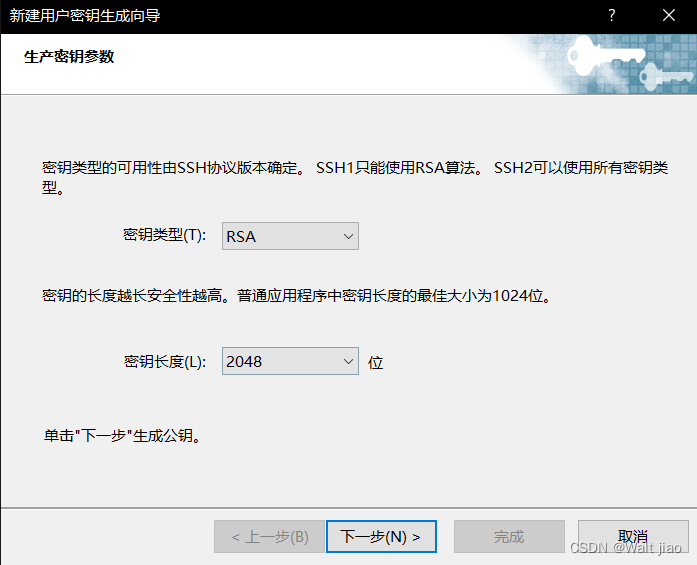 2.点击下一步,此处可以设置密钥长度,可以看到的是密钥长度越长越安全