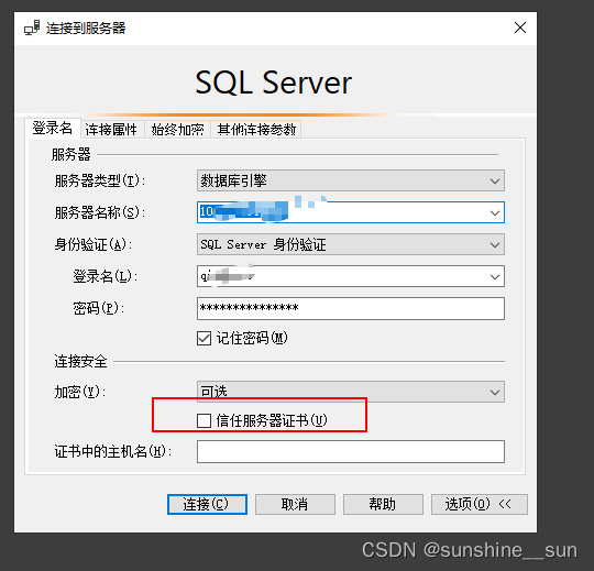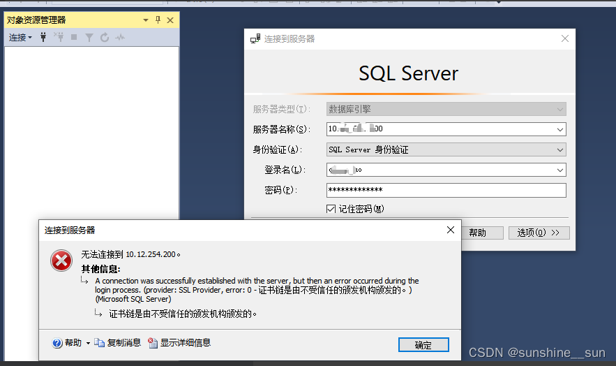 SQL Sever无法连接服务器,报错证书链是由不受信任的颁发机构颁发的