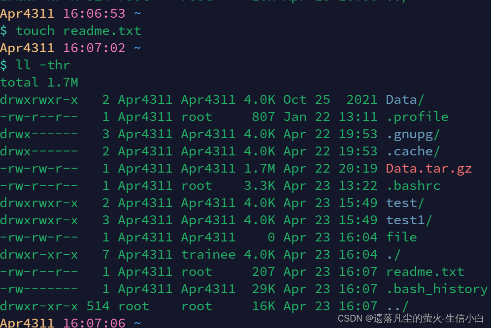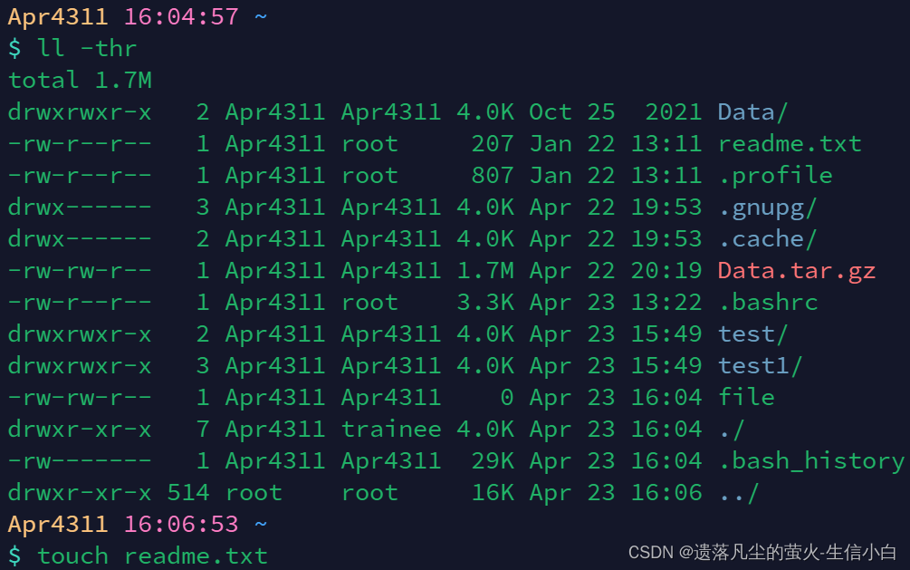 ll -thr ## 常用,以时间倒序列出所有文件,并显示文件大小