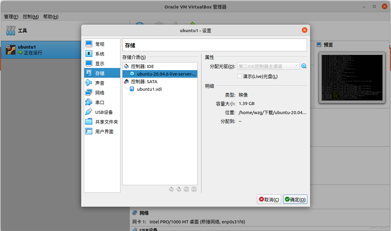 虚拟机默认的网络模式是NAT网络地址转换模式,但此时我们需要虚拟机与本机通信,所以我们选择桥接模式。