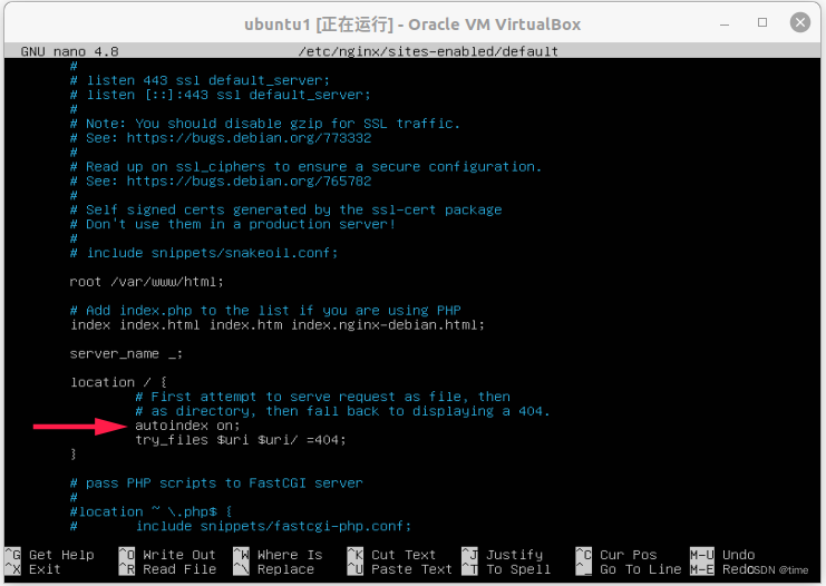 sudo vim /etc/nginx/sites-enabled/default 图片中所示位置添加