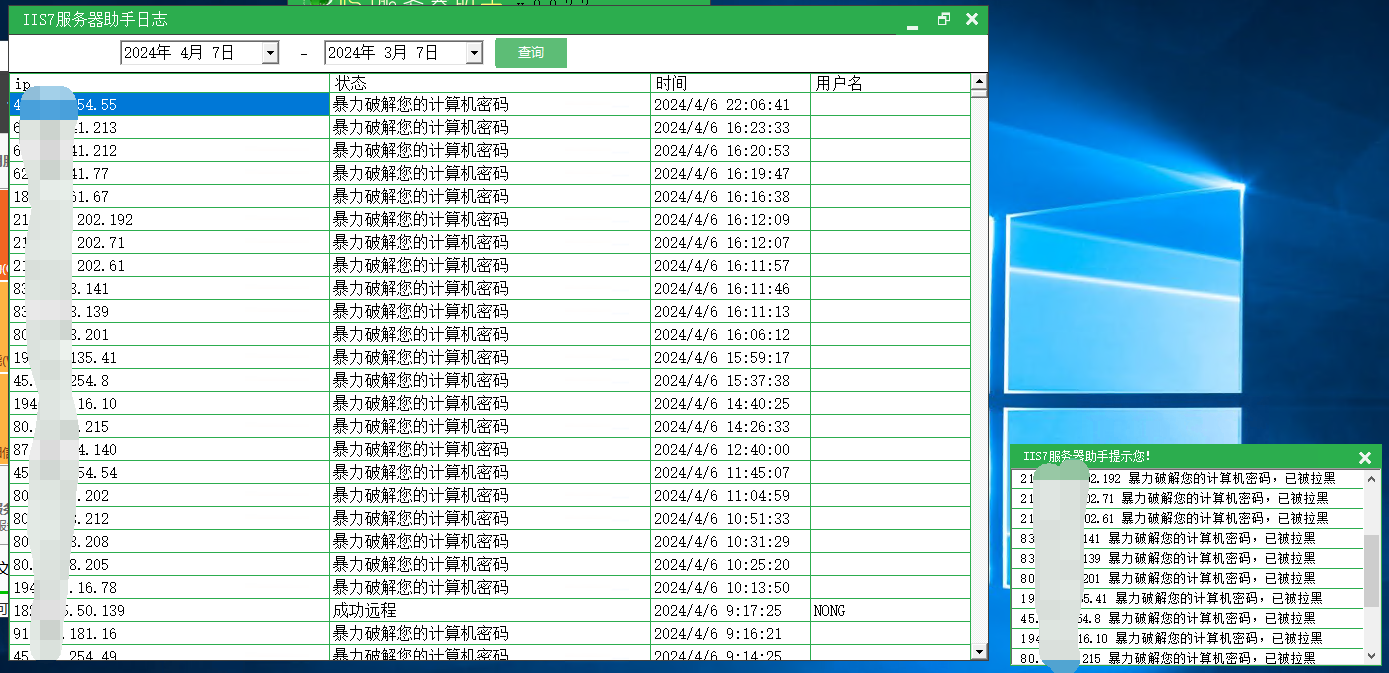 4、装个IIS7服务器助手,它可以自动封禁暴力破解我们服务器的IP。如下图:
