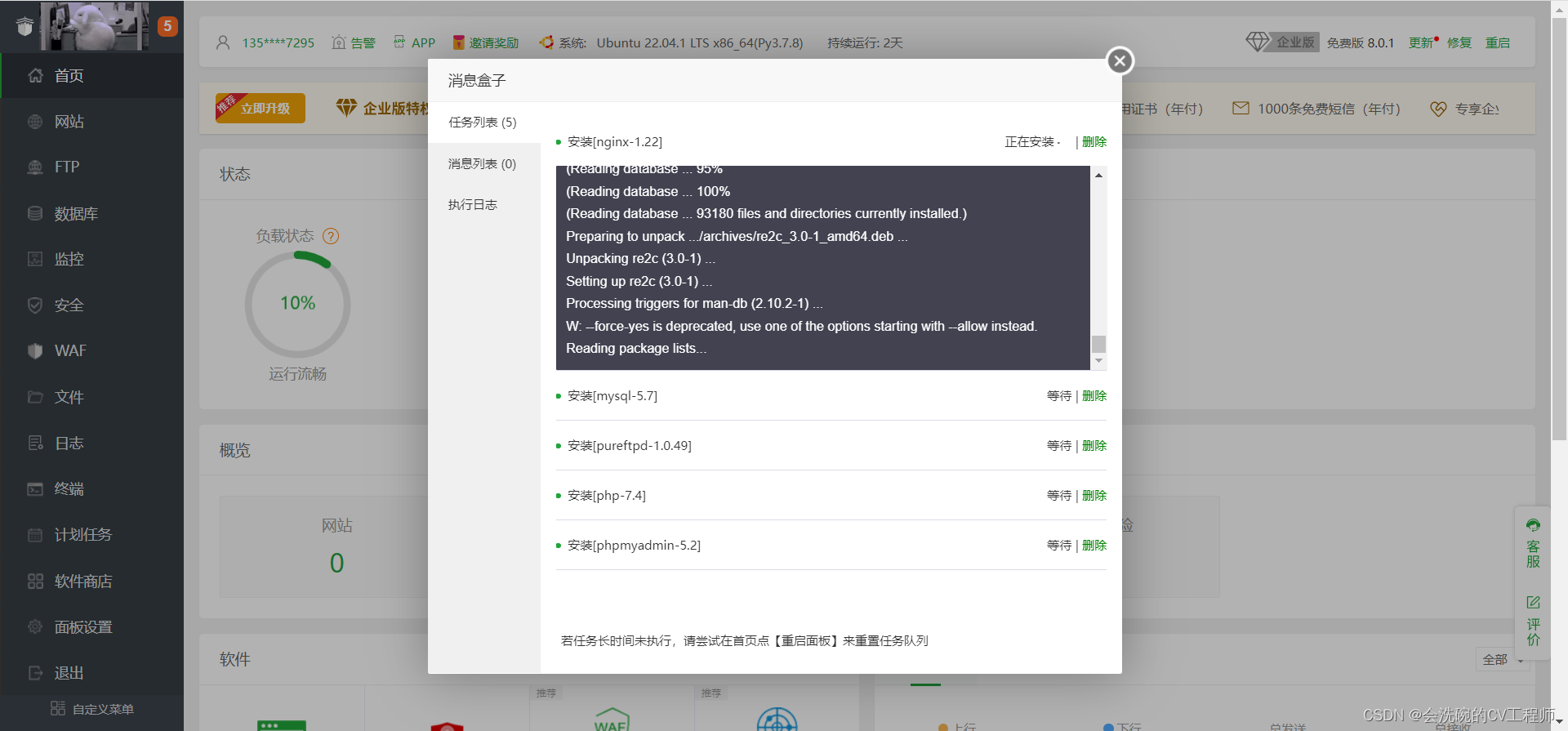 BT(宝塔)面板可视化的服务器管理软件,支持一键LAMP/LNMP/监控/网站/FTP/数据库/JAVA等100多项服务器管理功能。可以通过Web端轻松管理服务器,提升运维效率。例如:管理网站、管理文件、图表化监控、计划任务等功能。