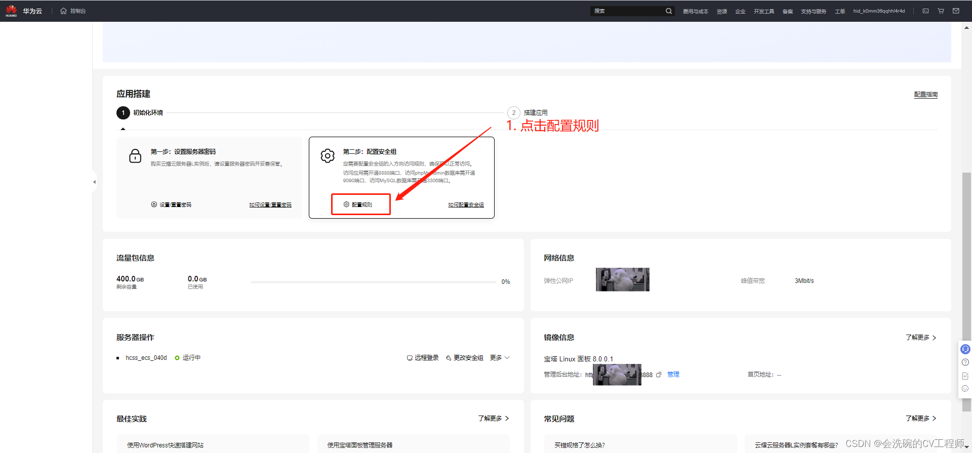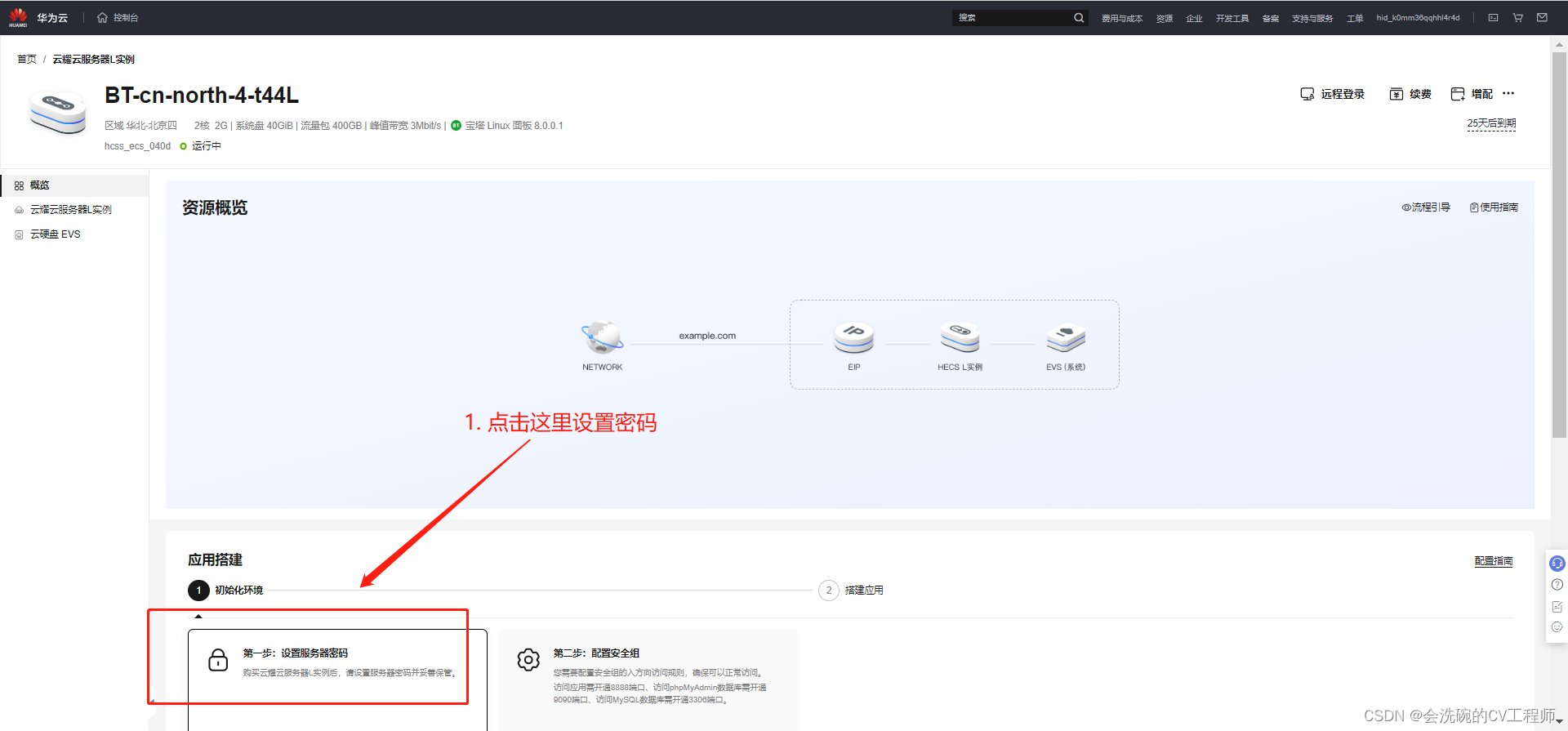 接下来介绍如何购买并配置云耀云服务器L实例,包括购买云服务器、设置云服务器密码、配置安全组。