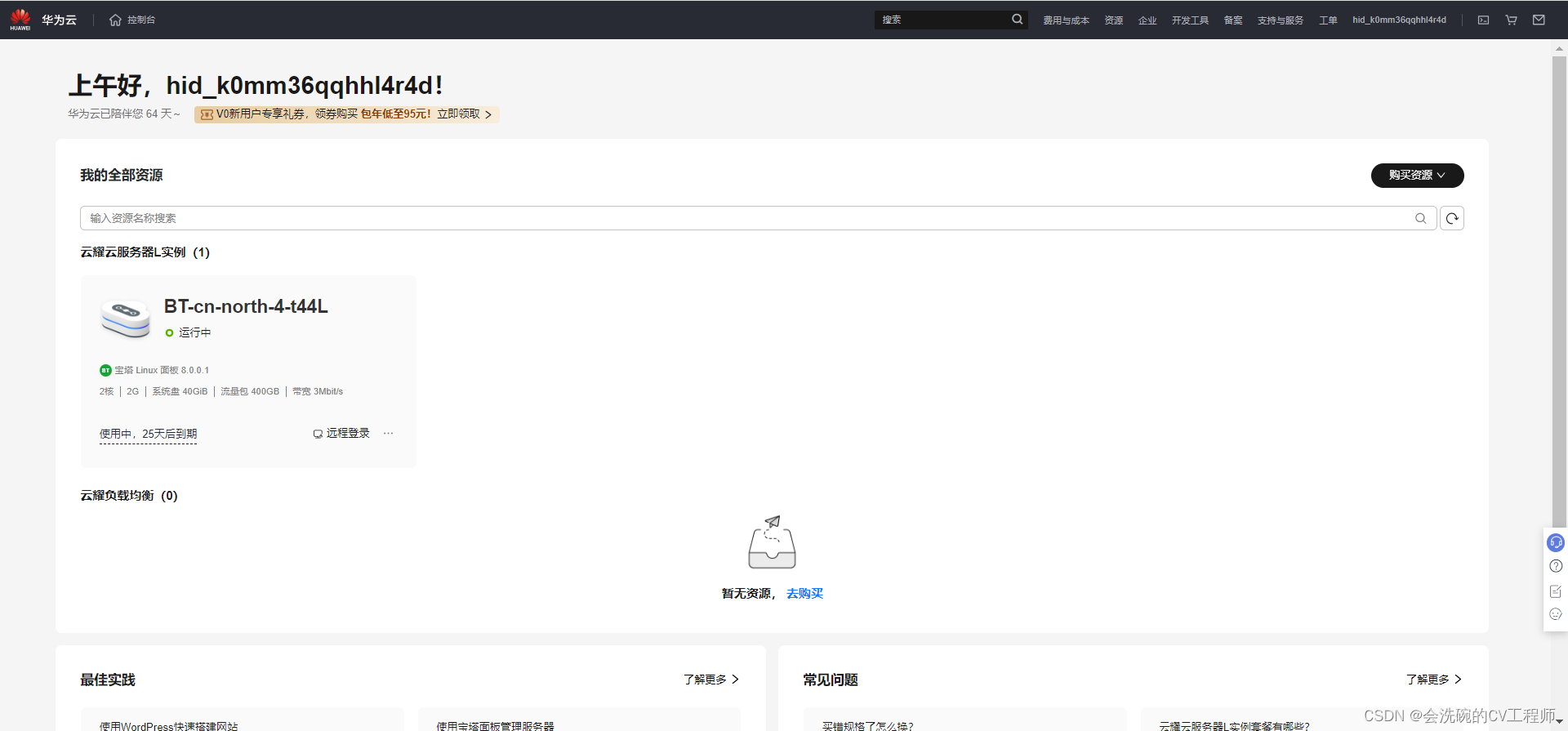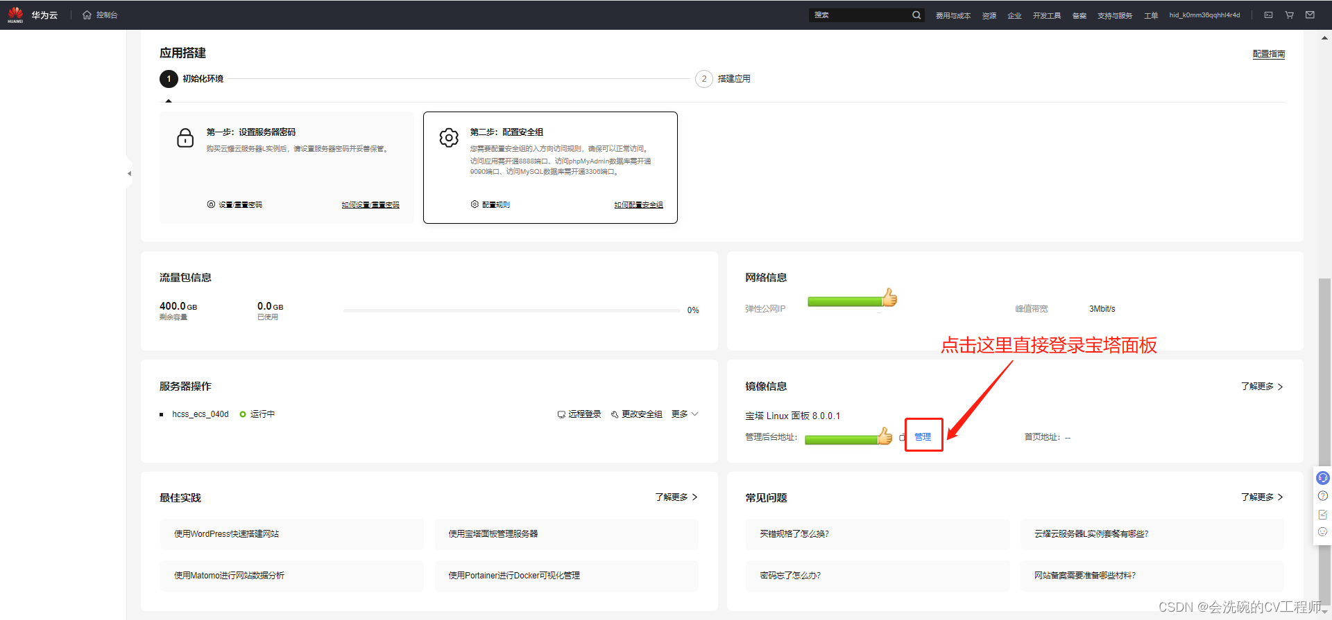 OK,这时候我们再返回首页面点击控制台,就有了属于我们的云服务器: