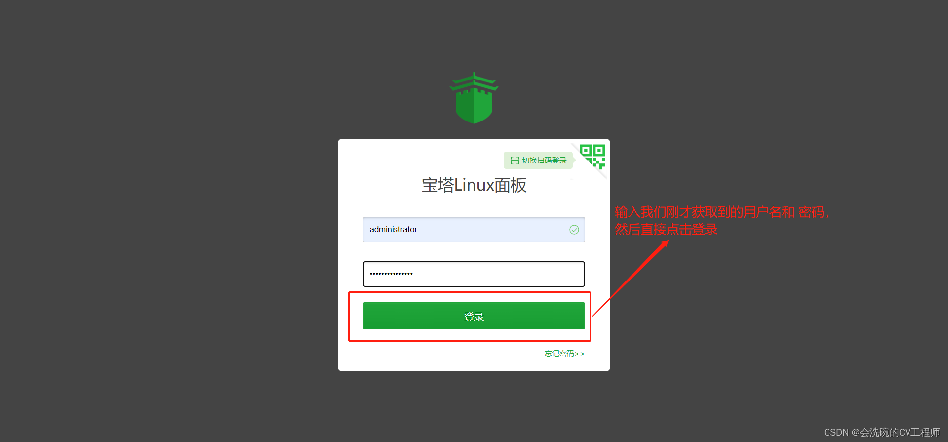 2. 输入我们刚才获取的用户名和密码,然后直接点击登录