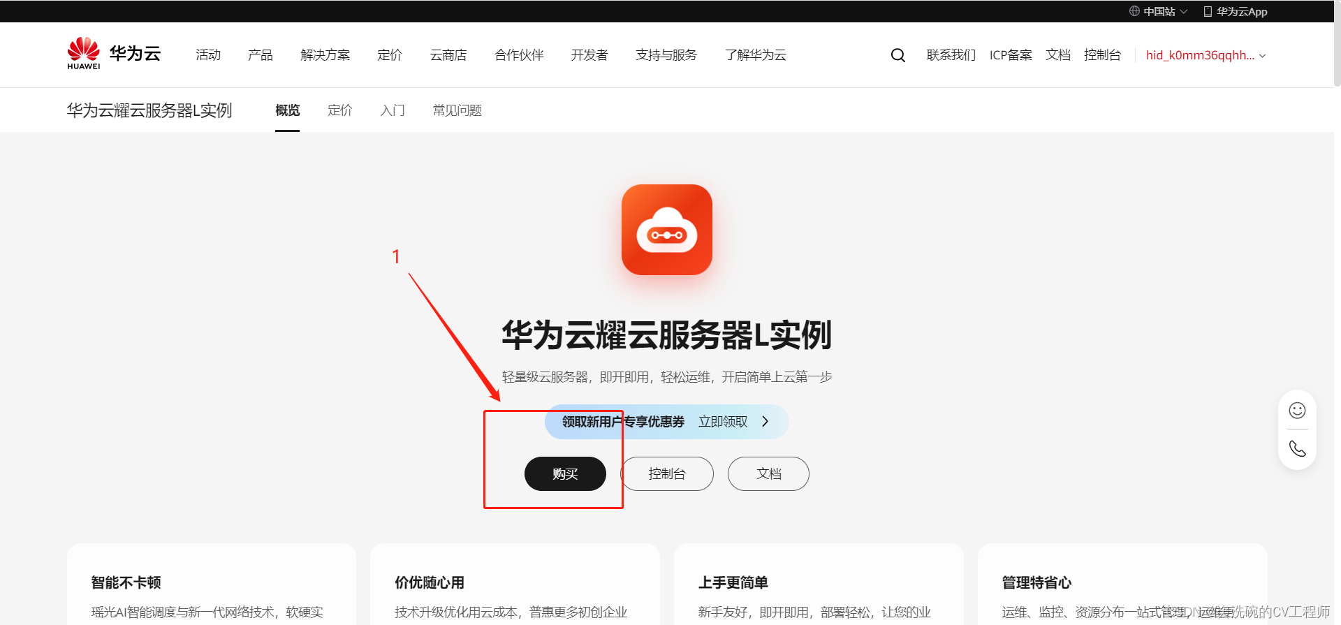 1.1 华为云云耀云服务器L实例