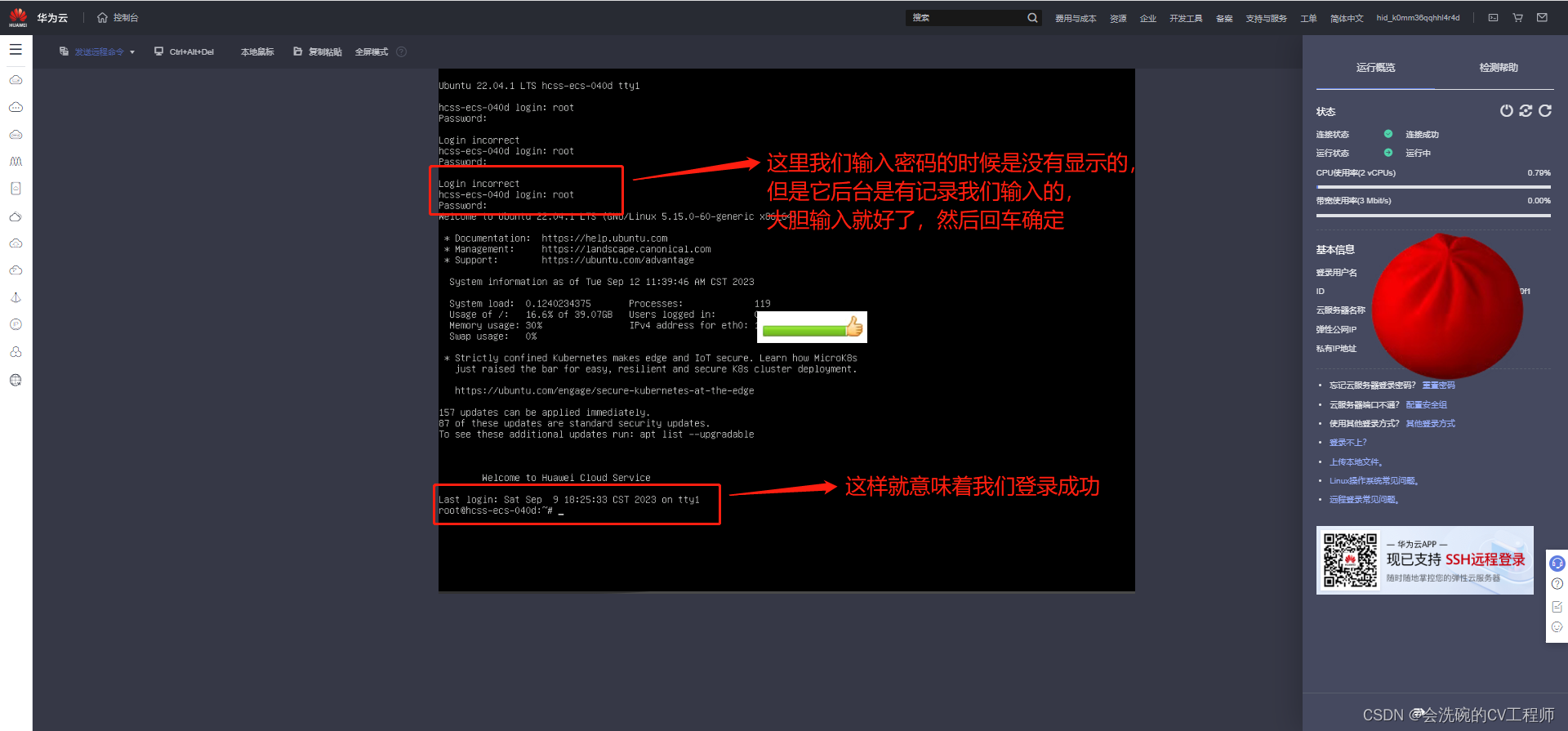 根据界面提示,输入用户名密码登录云服务器。