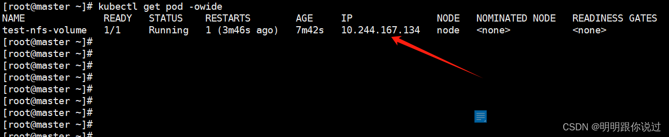 volumes: - name: nfs-volumes nfs: path: /data/nfs-k8s server: 192.168.40.132 在master节点上执行