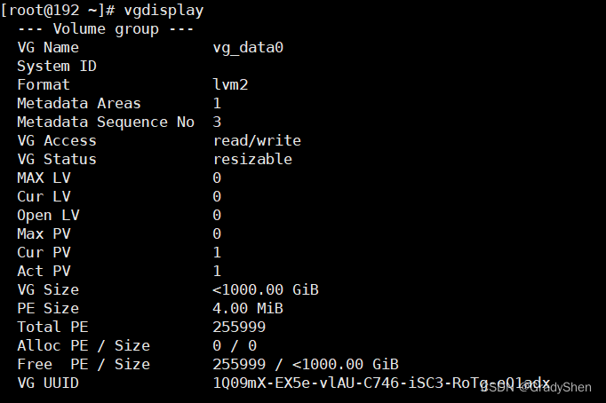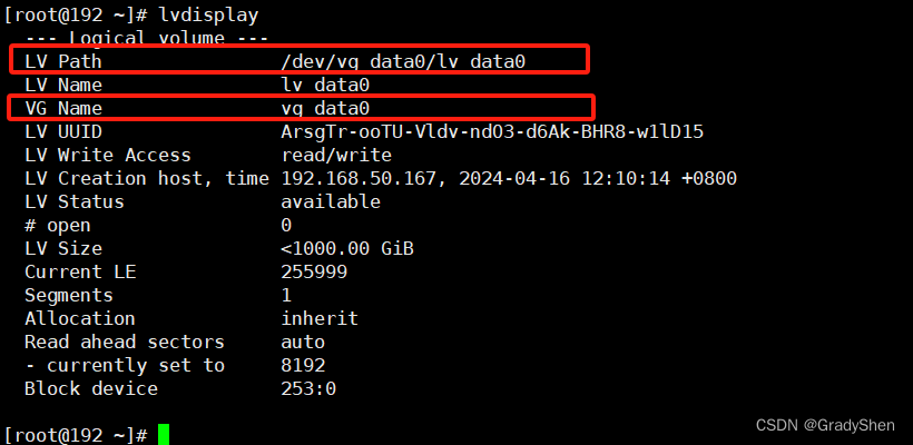 lvdisplay查看,已经没有“/dev/vg_data0/lv_data0”