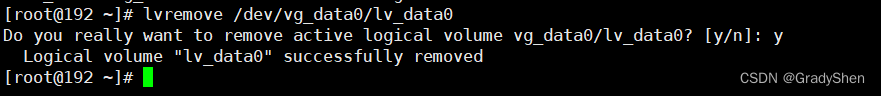 删除lv,这里是“/dev/vg_data0/lv_data0”