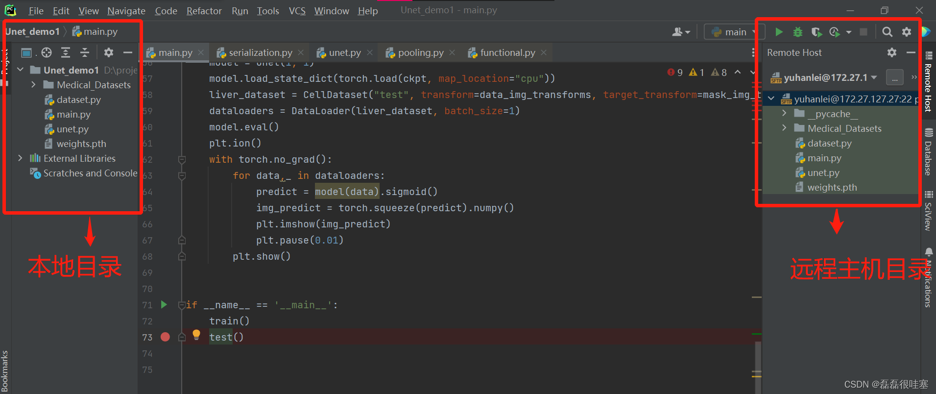cd /icislab/volume1/yhl/projects/unet #先切换到.py文件目录下 python3 main.py #运行文件即可 不出意外,肯定会报错哈哈,因为很多包都没有安装。按照提示安装就好了