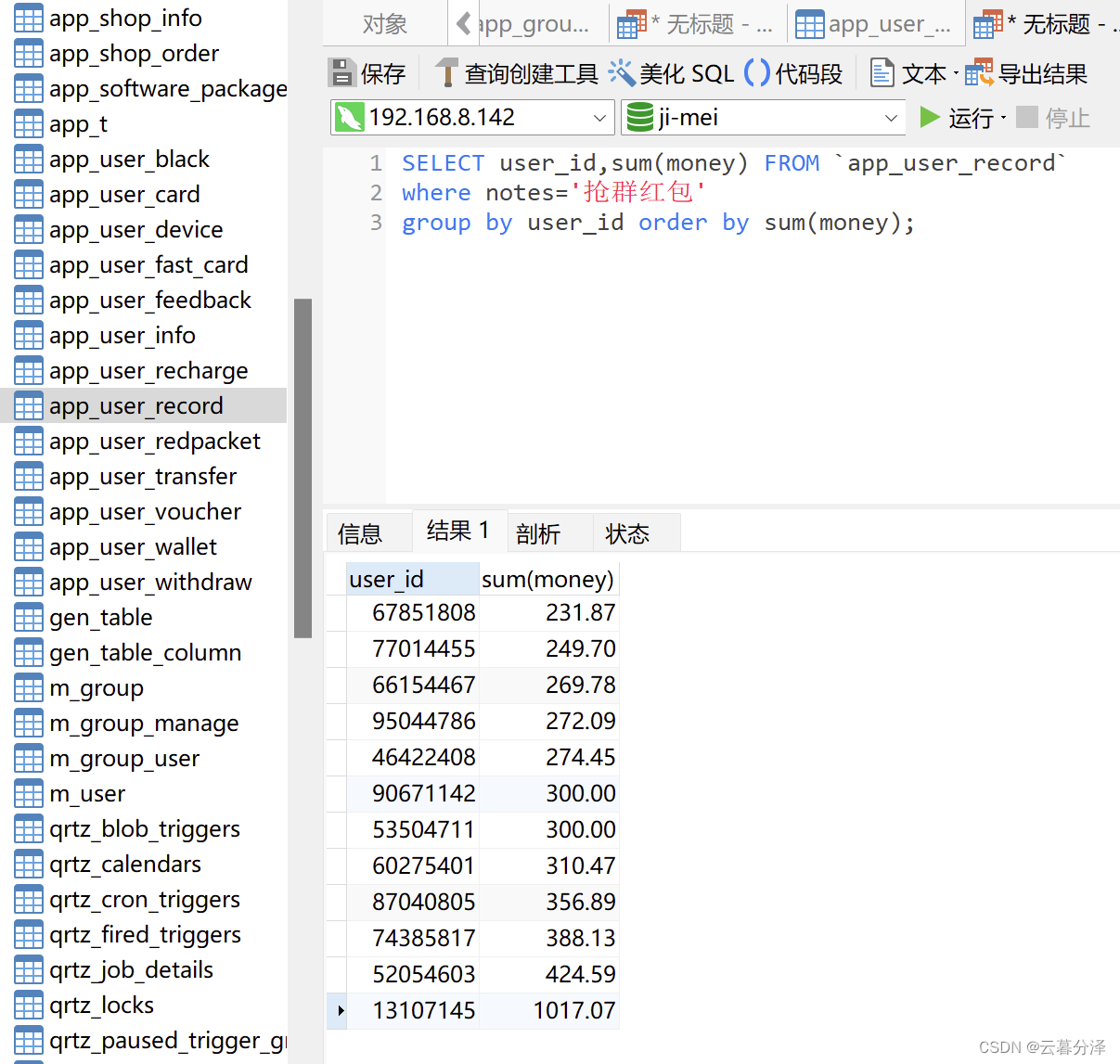 29.分析数据库数据,在该平台抢得最多红包金额的用户的登录IP是