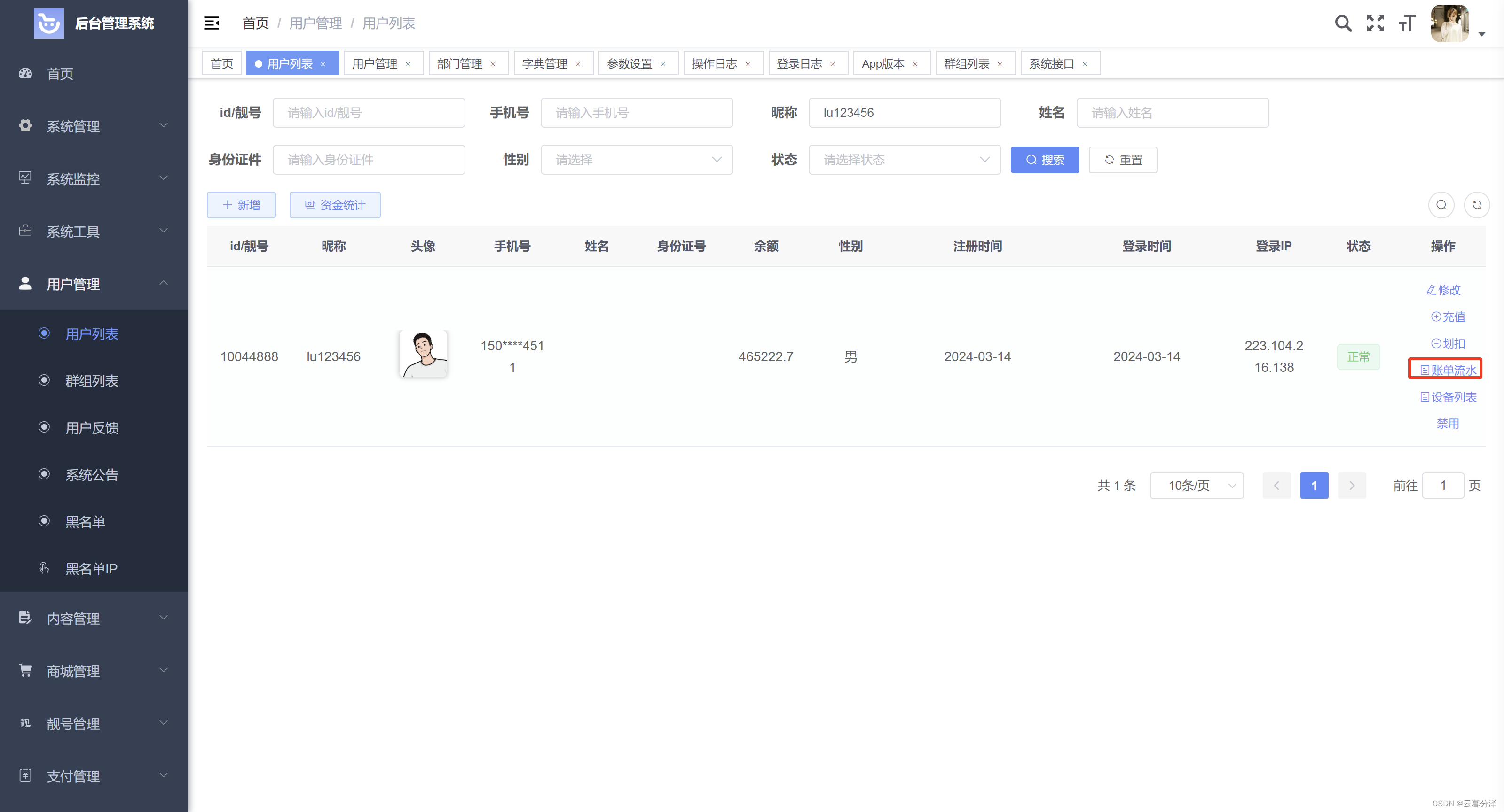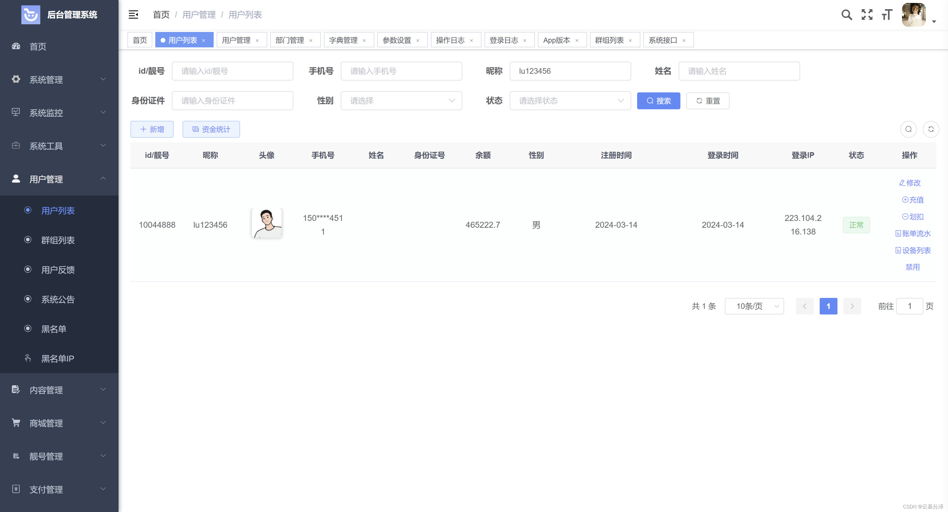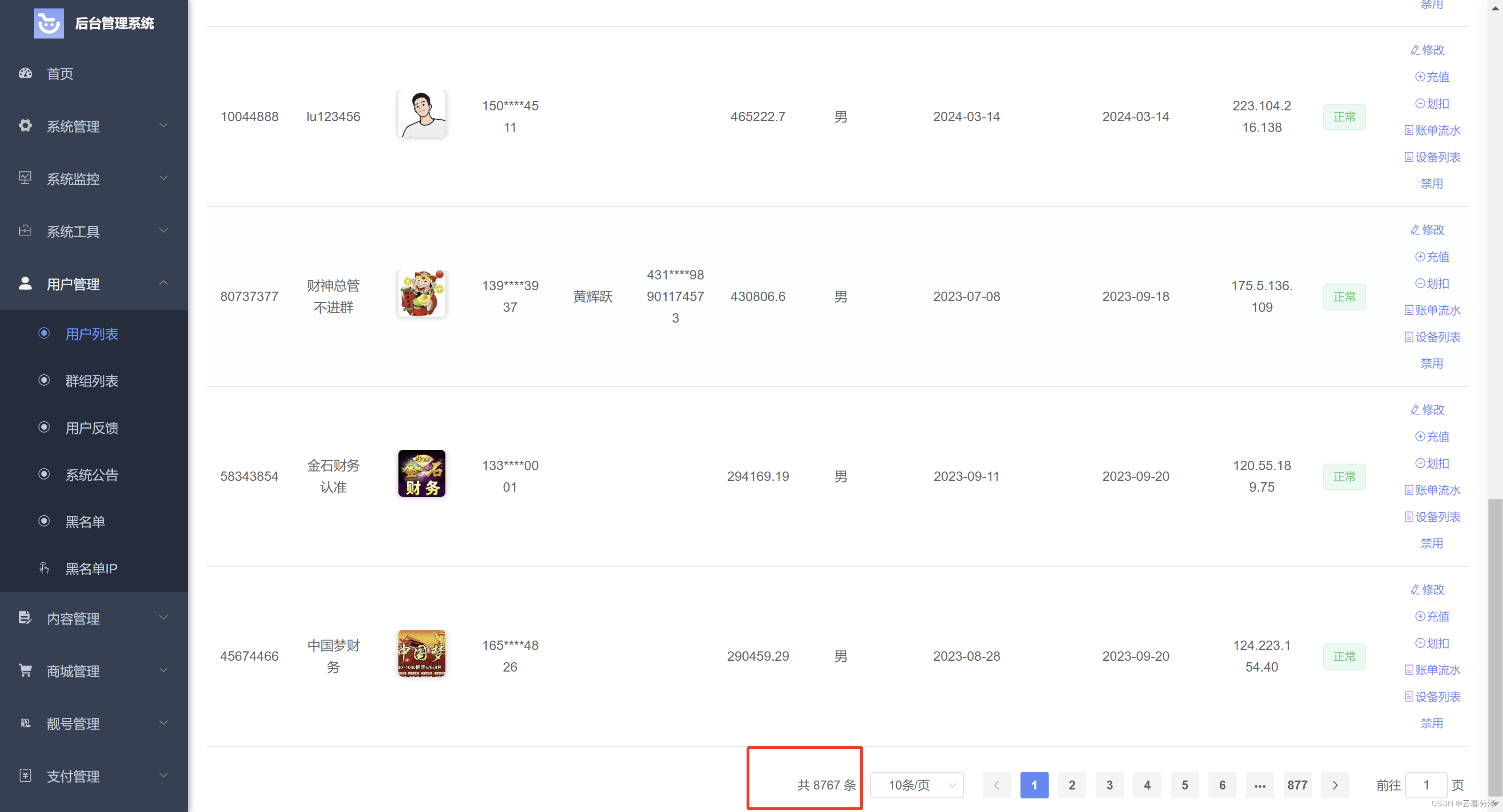 14.重构进入网站之后,用户管理下的用户列表页面默认有多少页数据