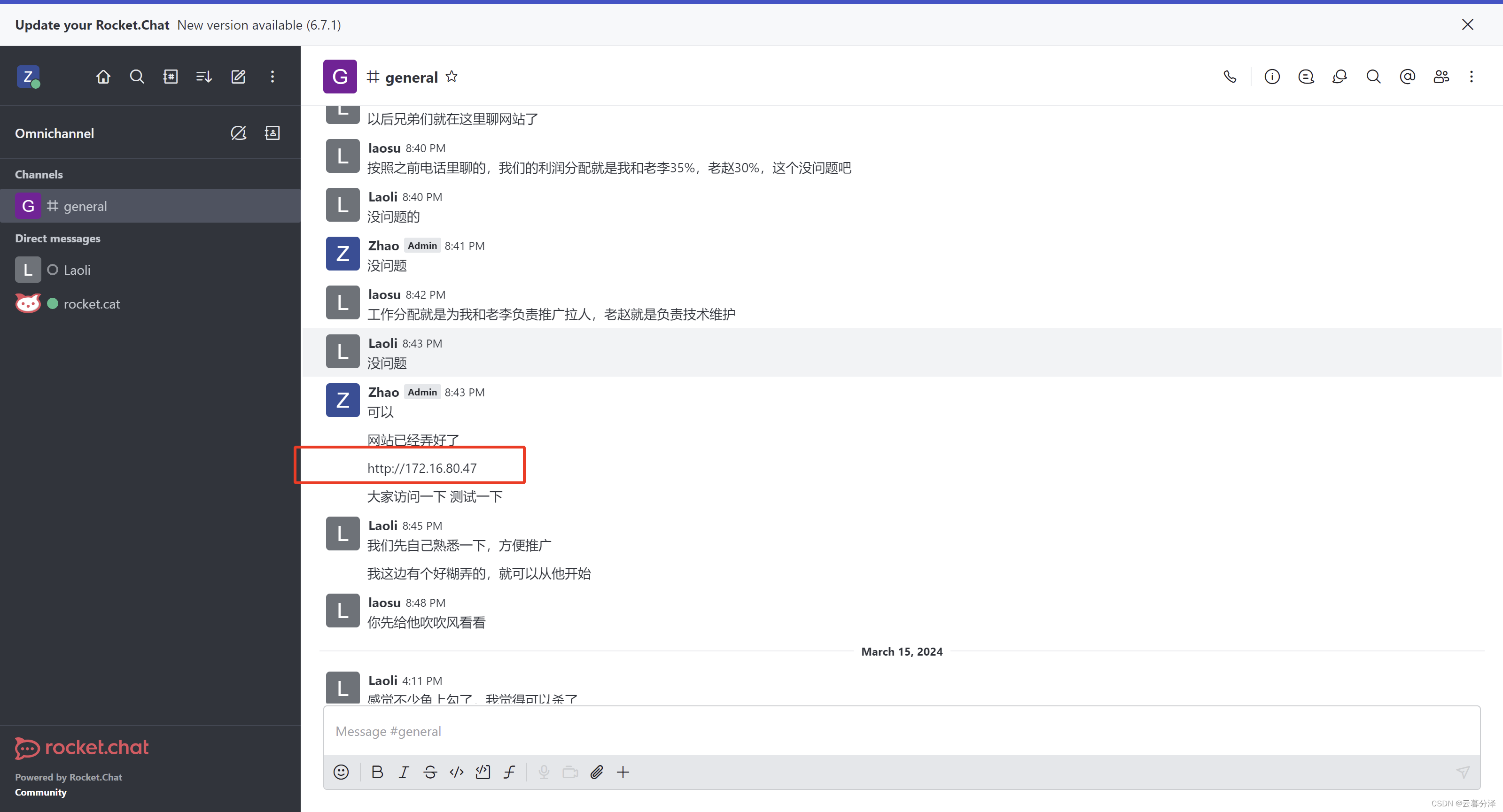 37.rocketchat服务器中,技术员提供的涉诈网站地址是?