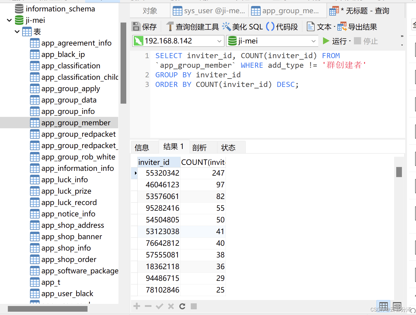 28.分析数据库数据,在该平台邀请用户进群最多的用户的登录IP是