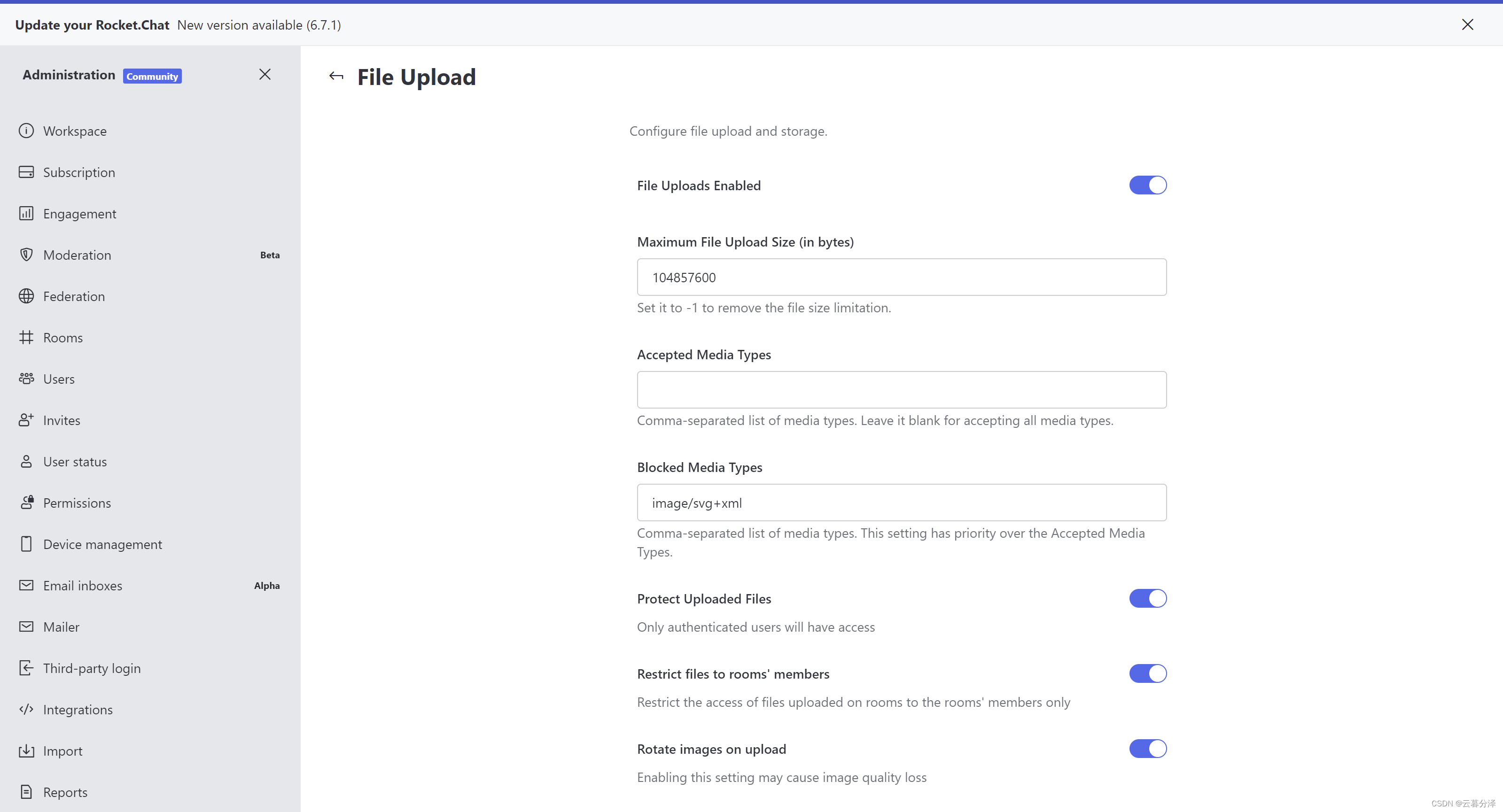 35.rocketchat服务器中,最大的文件上传大小是?(以字节为单位)